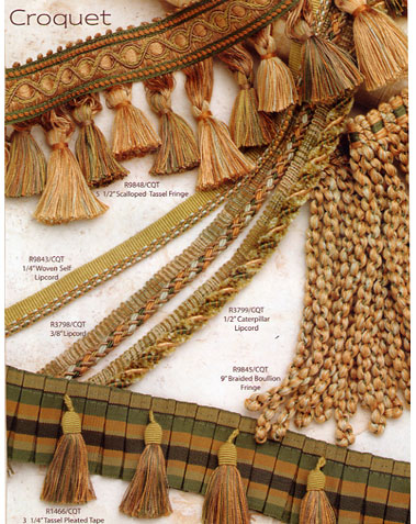 Brimar's extensive selection of tassels, tiebacks, boullions, brush and tassel fringes and decorative trims have become well respected in the design industry. Much of the success of their products is due to the fine craftsmanship combined with complicated colorways. All products are stocked and shipped from their warehouse in Lake Forest, Illinois. Many sampling