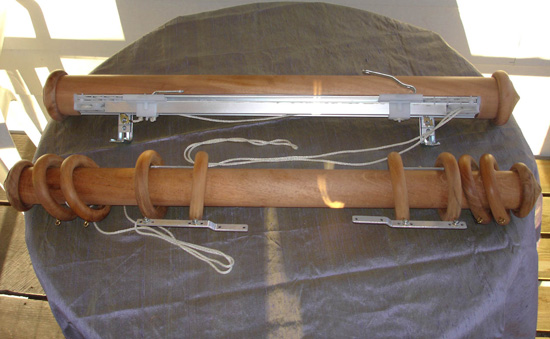 Bottom: 2 1/2" smooth traverse Wood Rod with rings, (Item # 206-U)